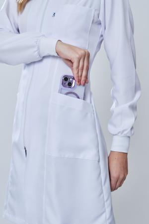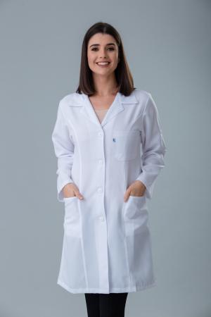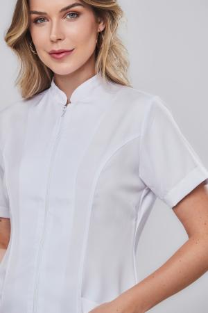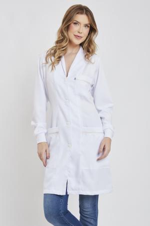 478 - Jaleco feminino manga longa com gola padre e punho de malha