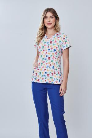 765 - Blusa de Scrub Feminino Plus Size Estampado